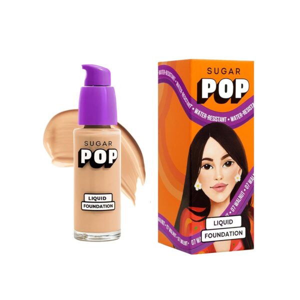 SUGAR POP Liquid Foundation – 03 Walnut – 30 ml | Water Resistant | Lasts Upto 10 Hrs | Super Matte | Full Coverage