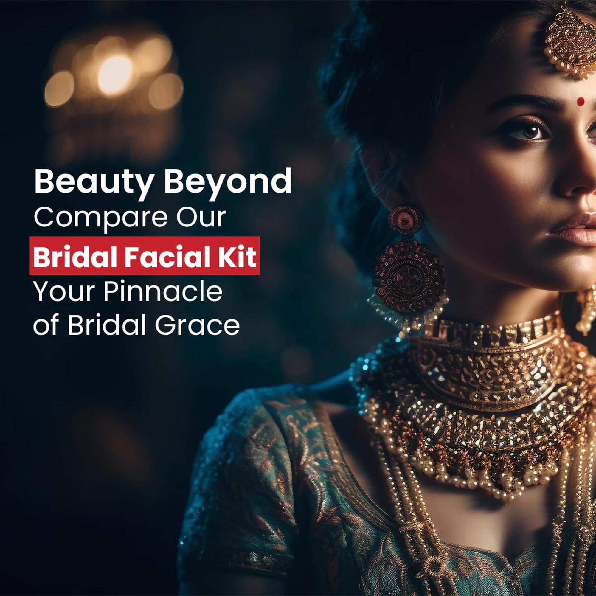 • Bridal Facial Kit facial kit have many benefits like purifies, nourishes, hydrates, moisturizes and contouring the facial structure making it all ready for a fresh bridal look. Cherry extract, a potent antioxidant helps the skin defend itself against environment aggressor. combat dullness and correct hyper-pigmentation while apricot oil promotes the formation of collagen which improves skin’s strength. elasticity and radiance.